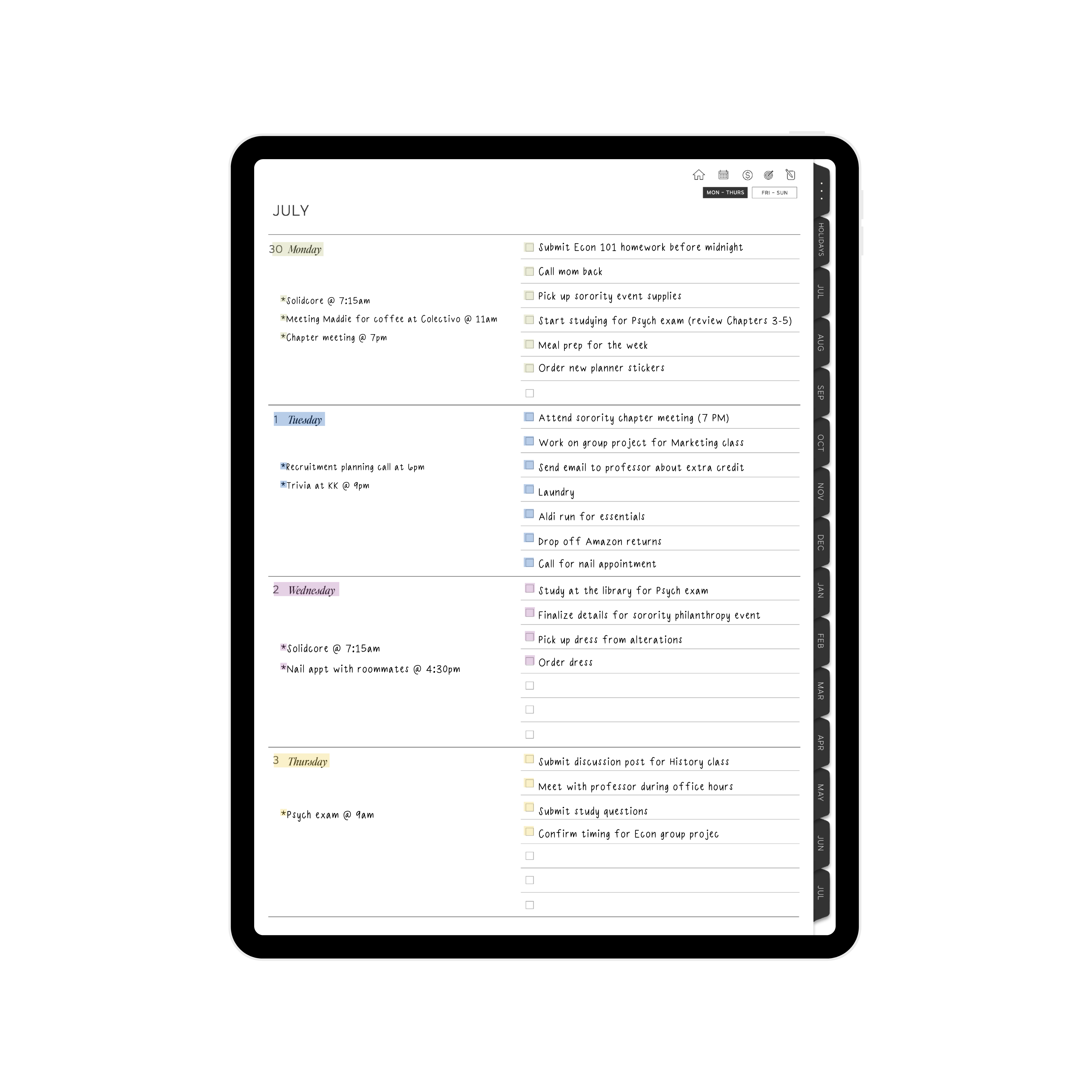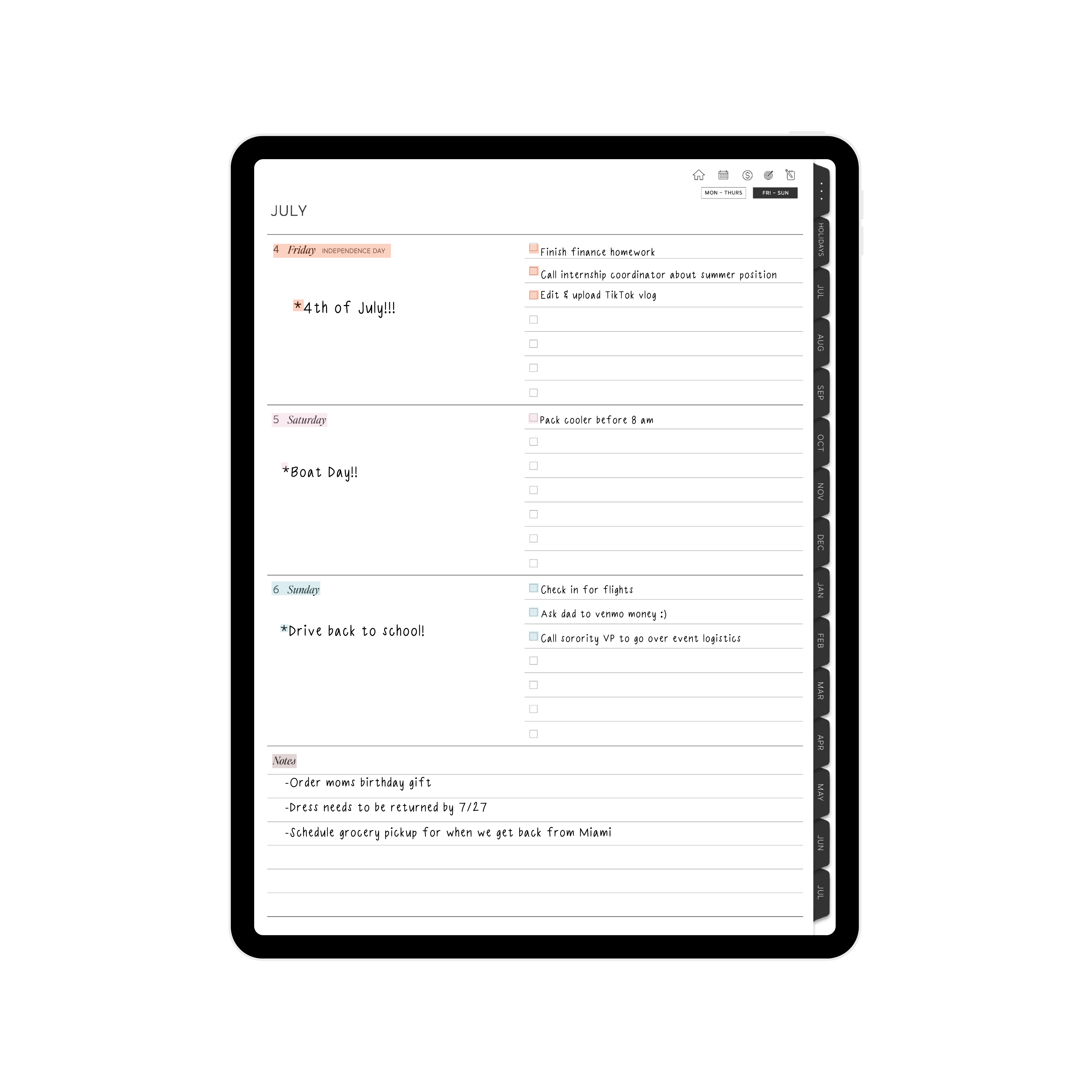 Ideal for those who prefer detailed, day-to-day planning (even on weekends!). It offers ample space for daily time-blocking, task lists, and notes, making it perfect for anyone with a busy schedule who needs to manage their time meticulously.