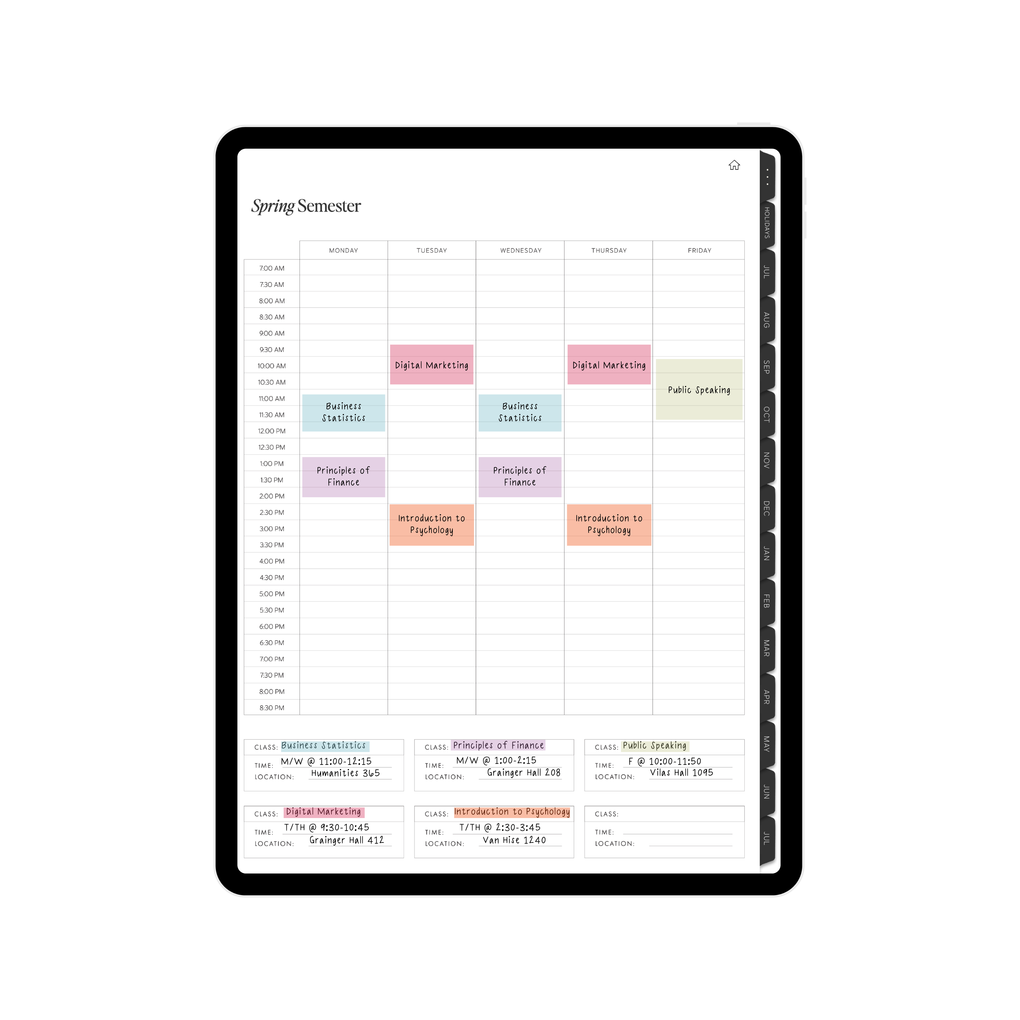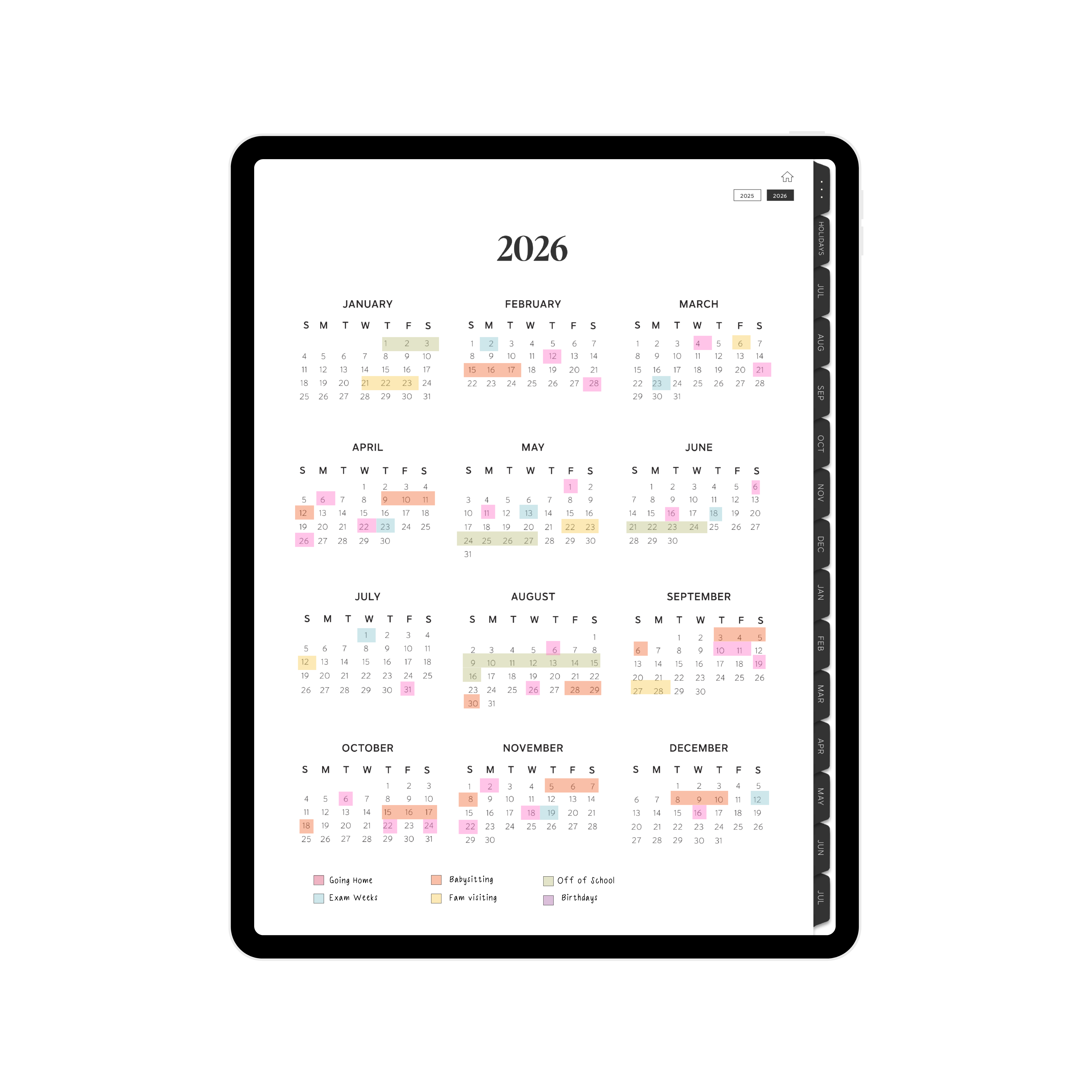 Includes all of your favorite planning pages from the Daily Planner, except for the individual pages for daily to-do lists and time-blocked scheduling. Instead, it features a 2-page spread for each week so you can see day-to-day schedules and task lists at a glance.