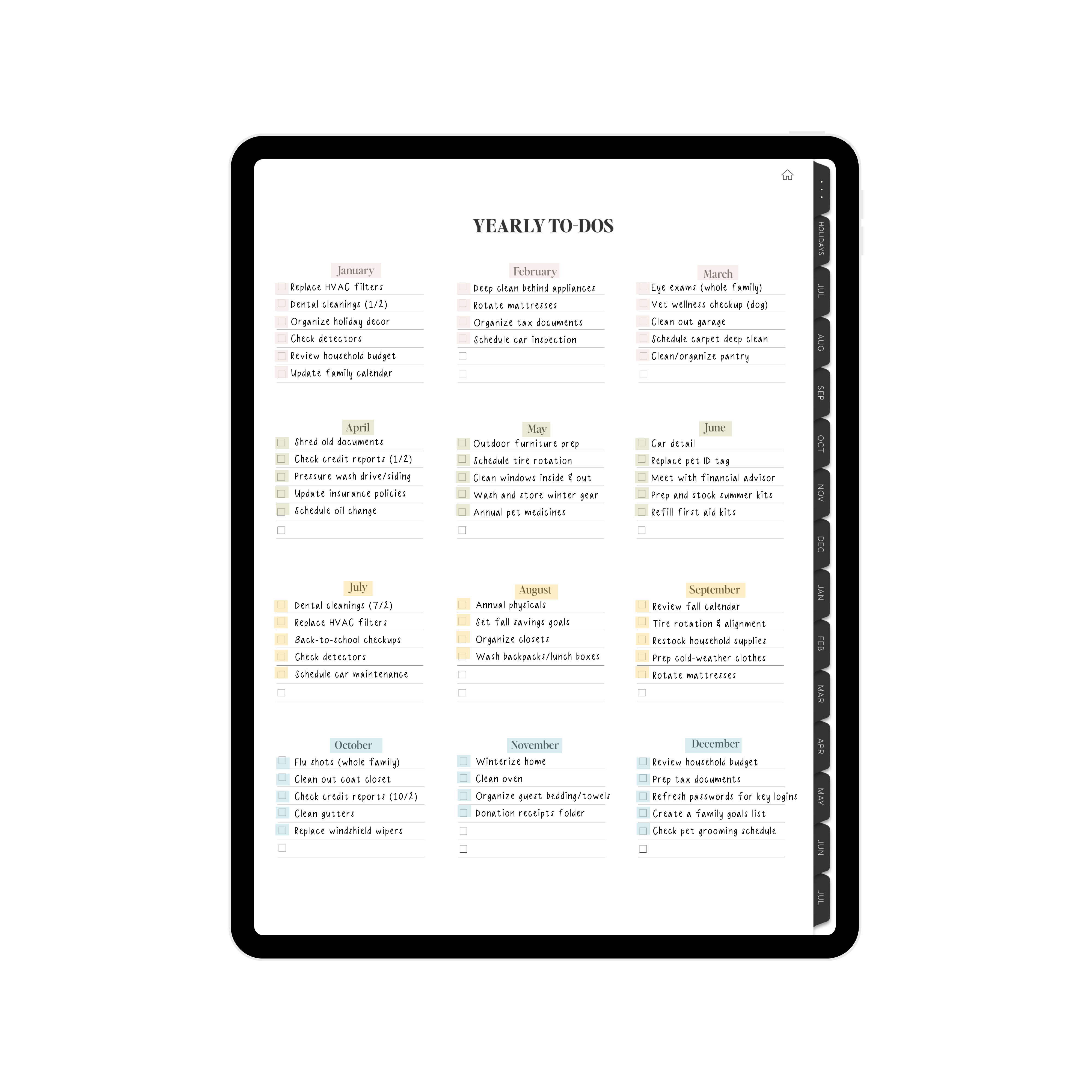 Includes all of your favorite planning pages from the Daily Planner, except for the individual pages for daily to-do lists and time-blocked scheduling. Instead, it features a 2-page spread for each week so you can see day-to-day schedules and task lists at a glance.