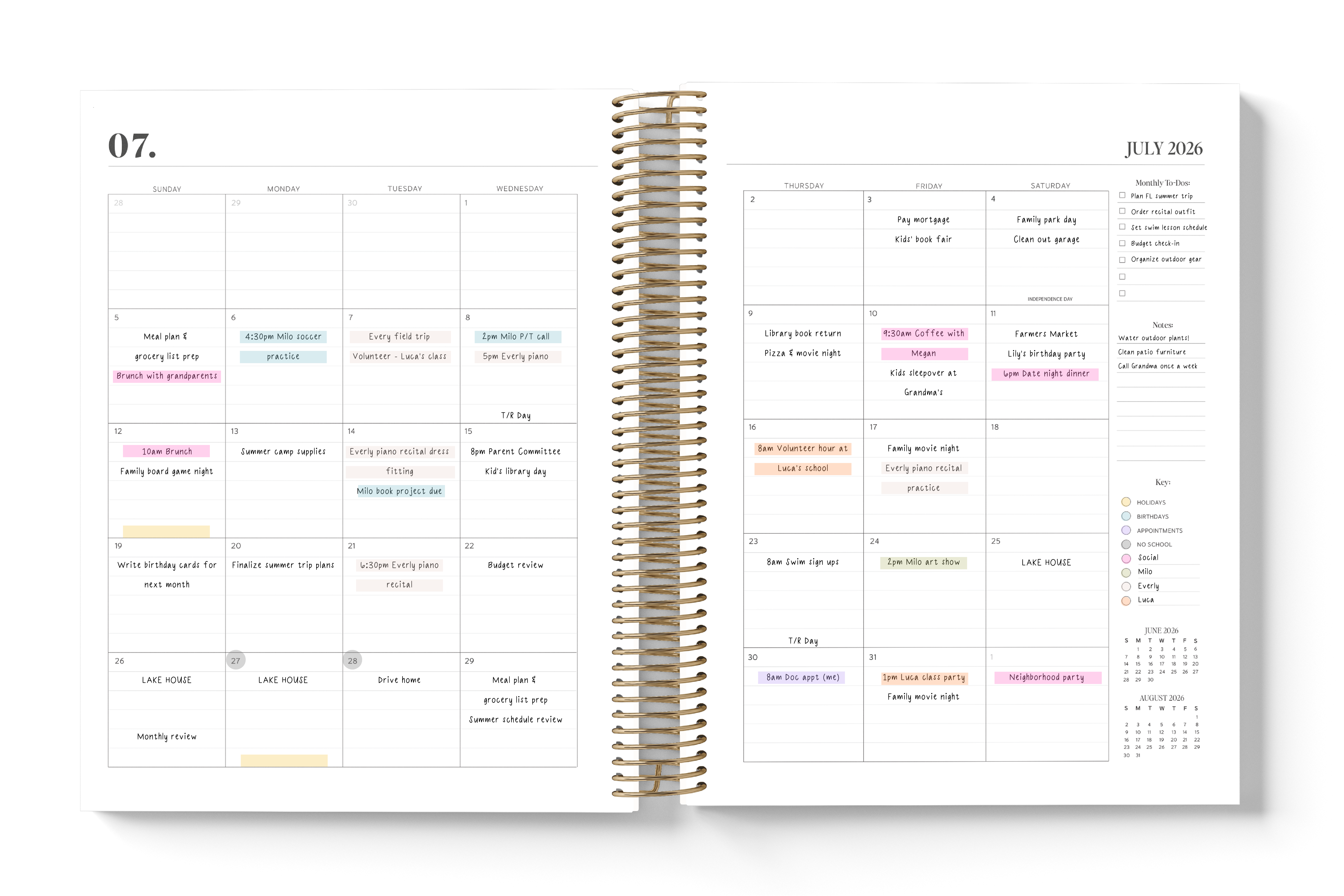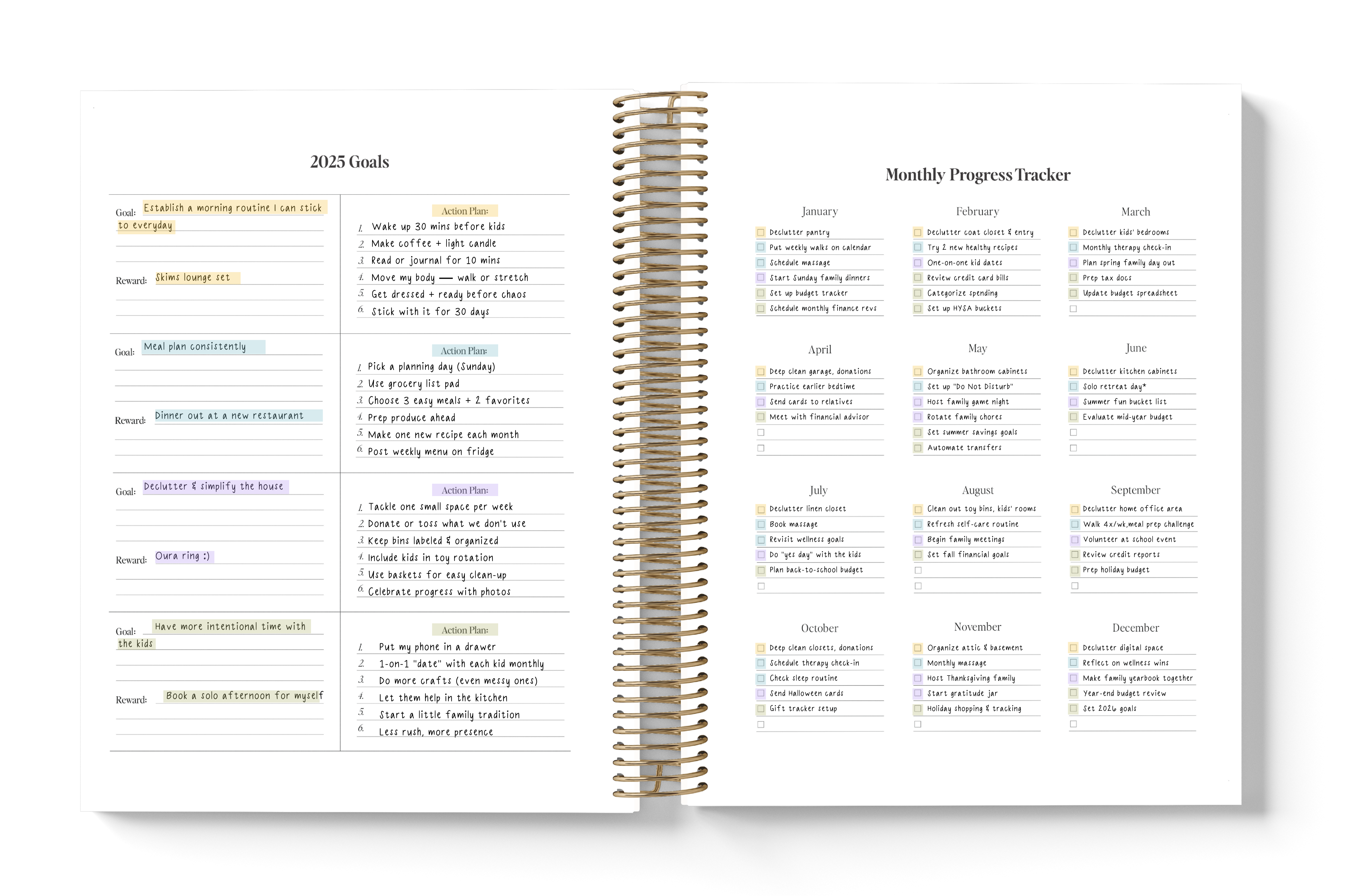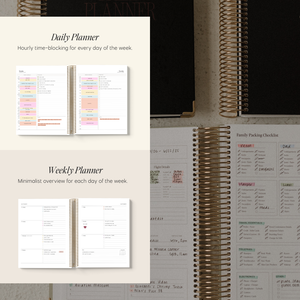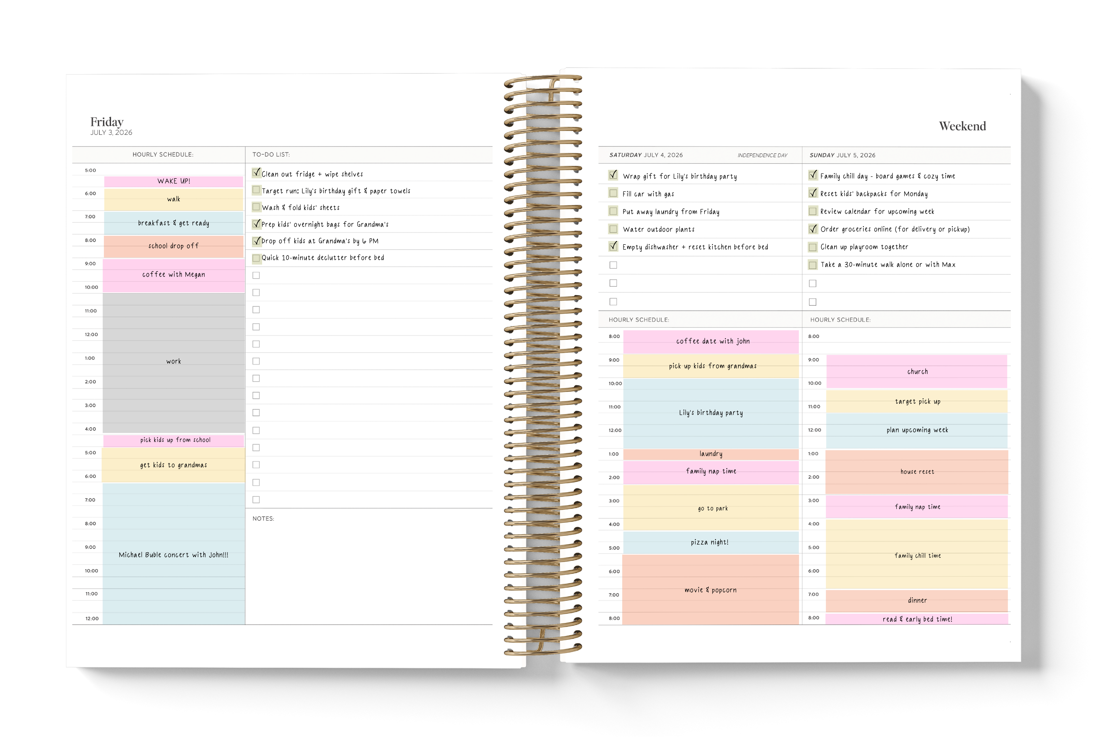 All the parenting tools and organization pages you love from the Mom Planner, but with a simpler weekly layout. No daily pages or time-blocking – just a clear view of your whole week in one place.