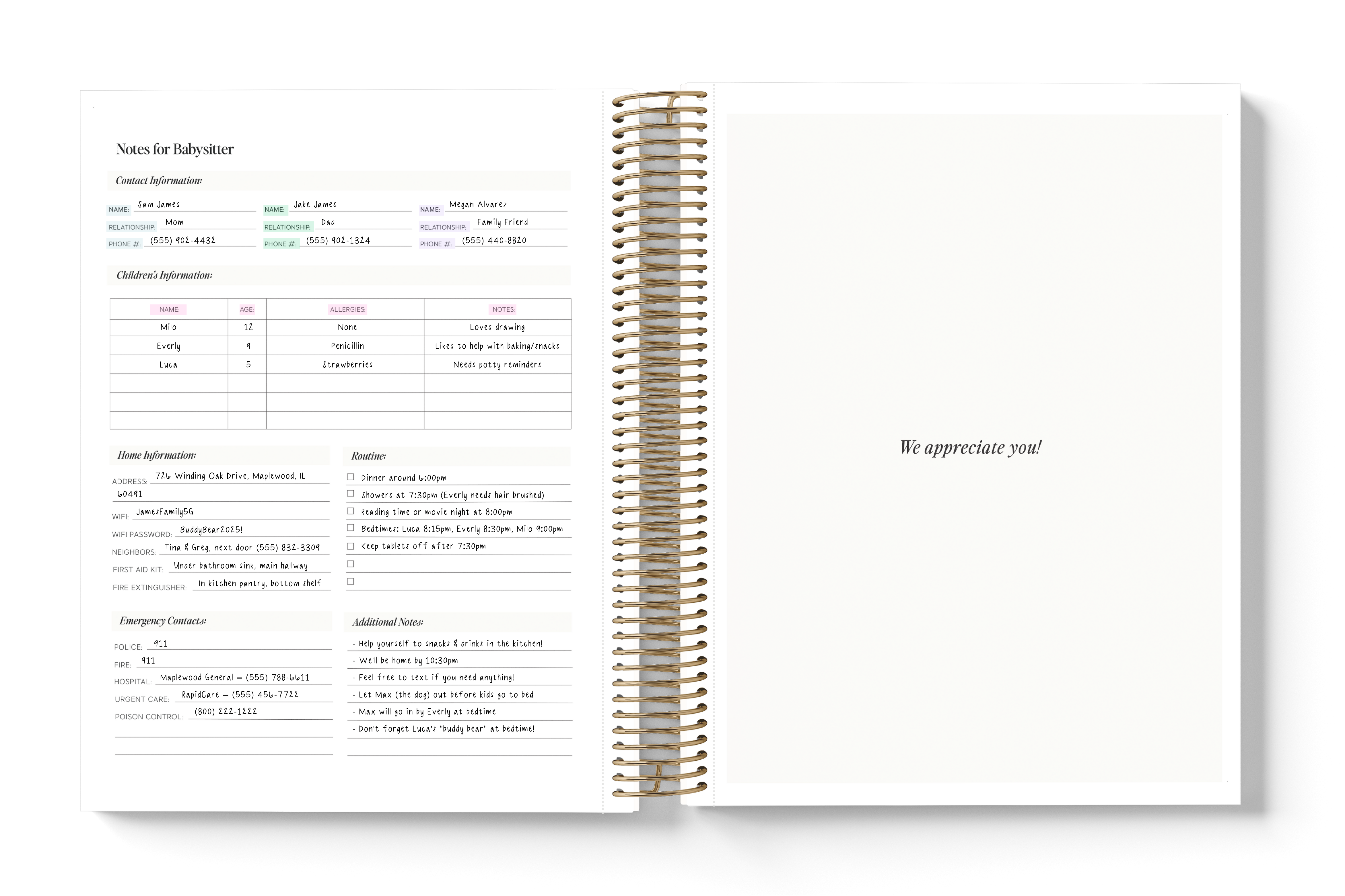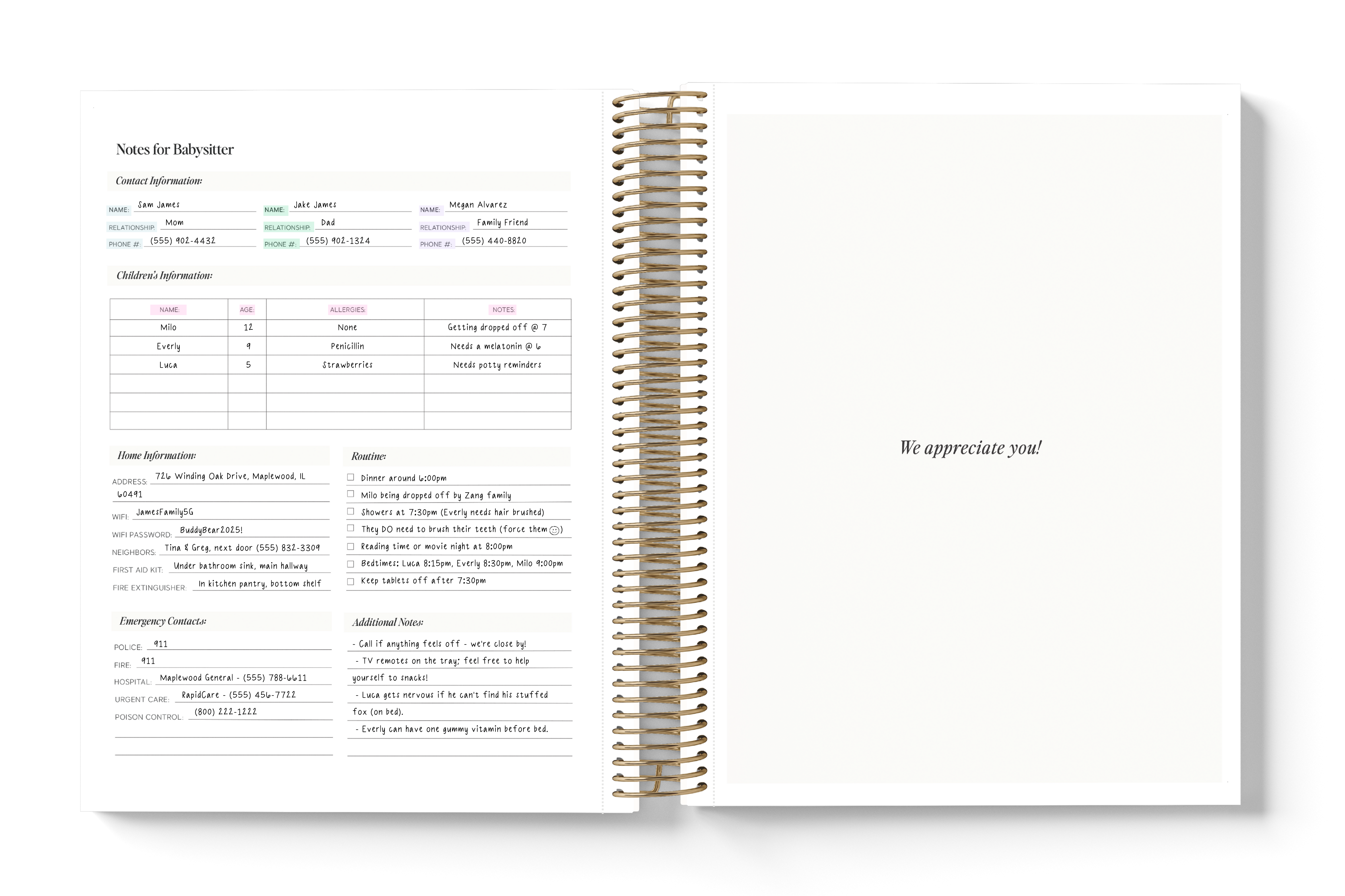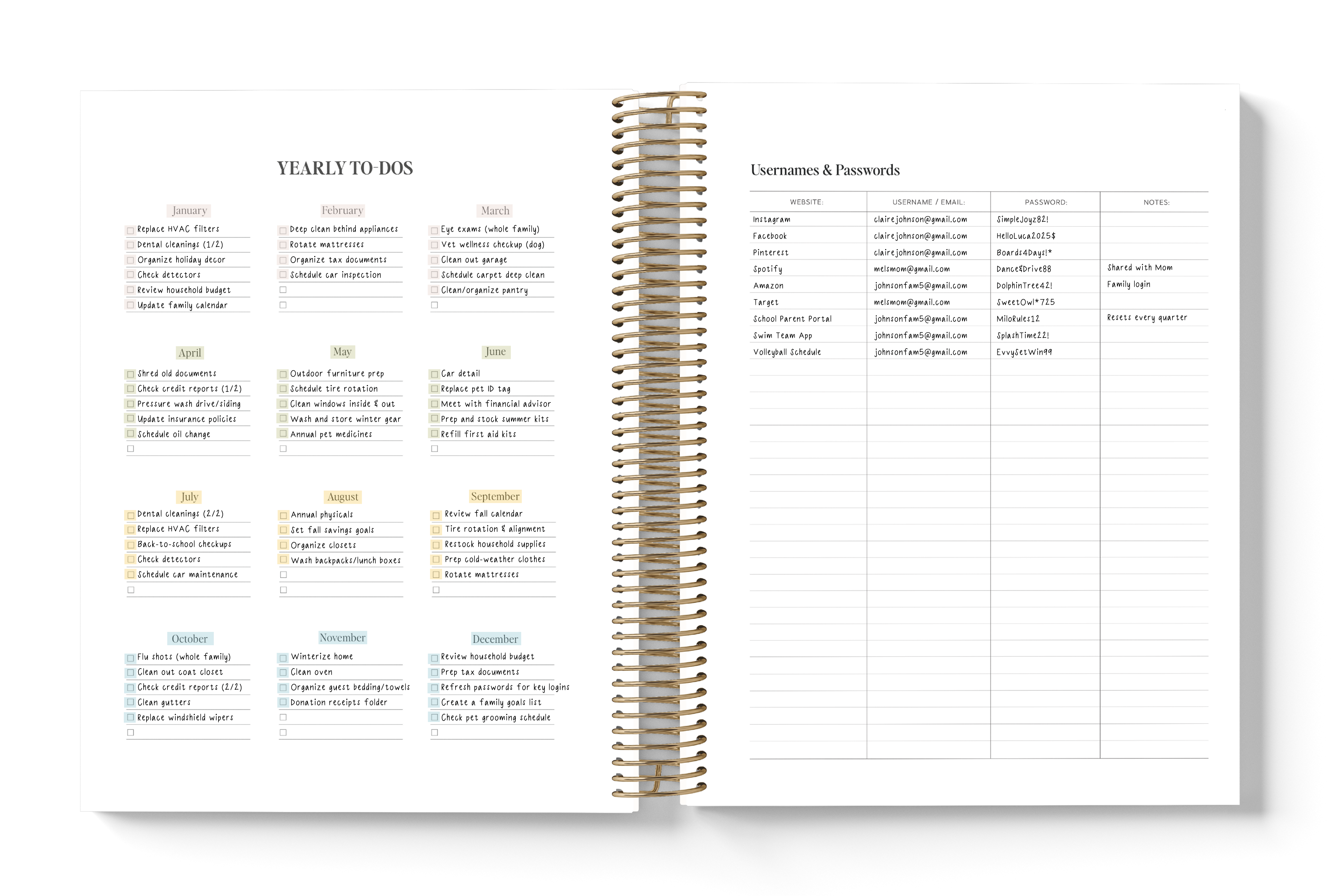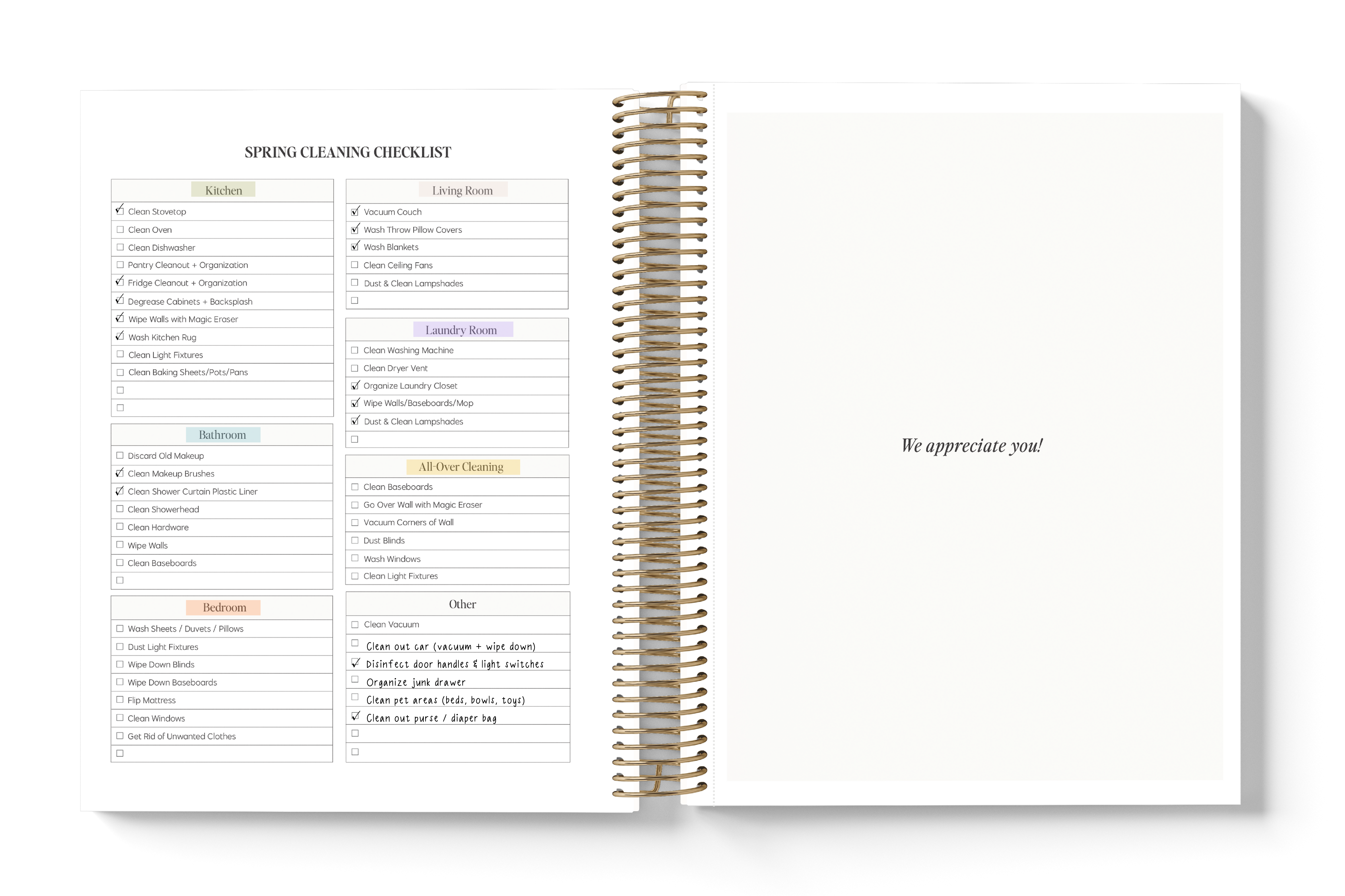 All the parenting tools and organization pages you love from the Mom Planner, but with a simpler weekly layout. No daily pages or time-blocking – just a clear view of your whole week in one place.