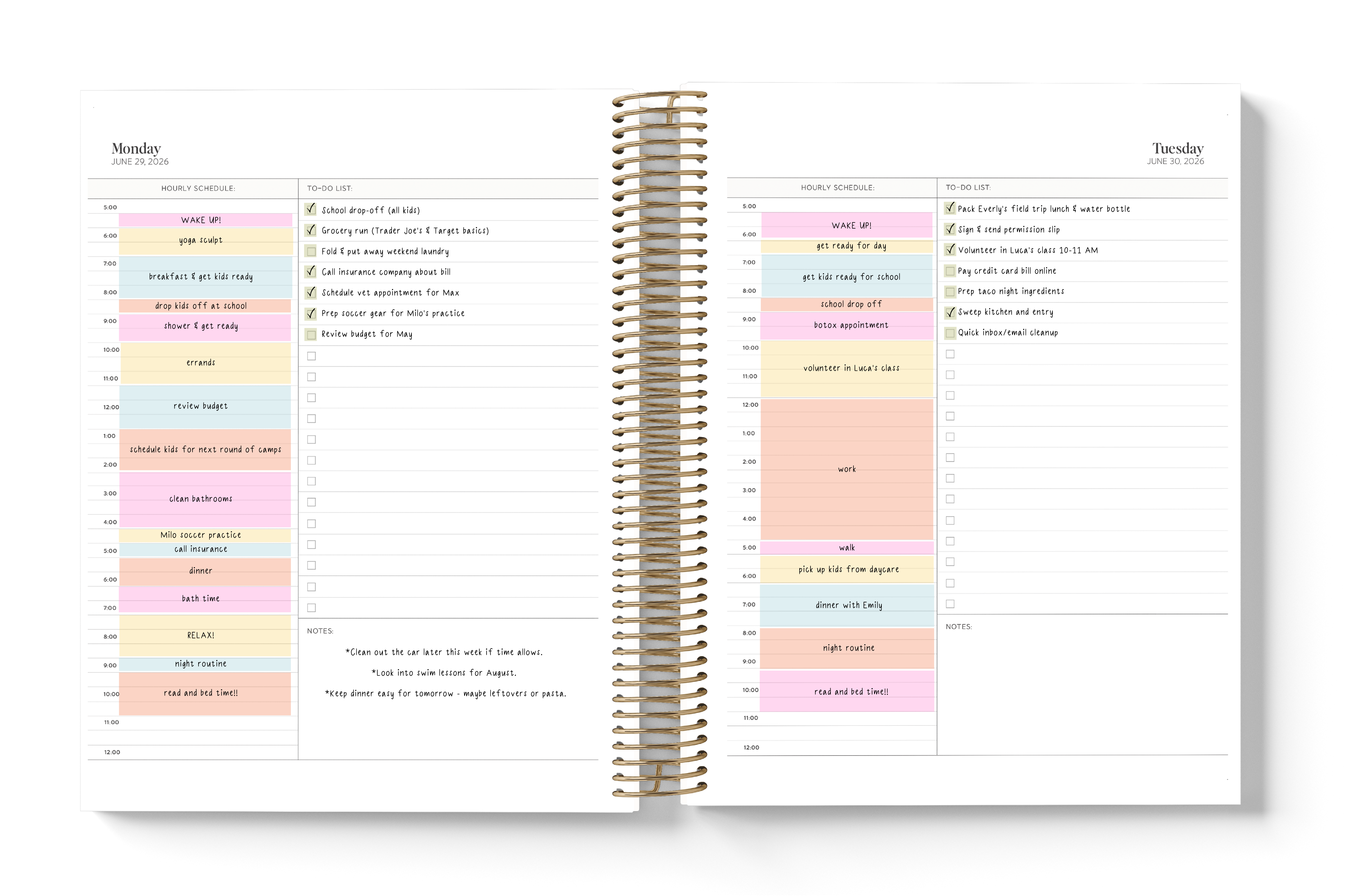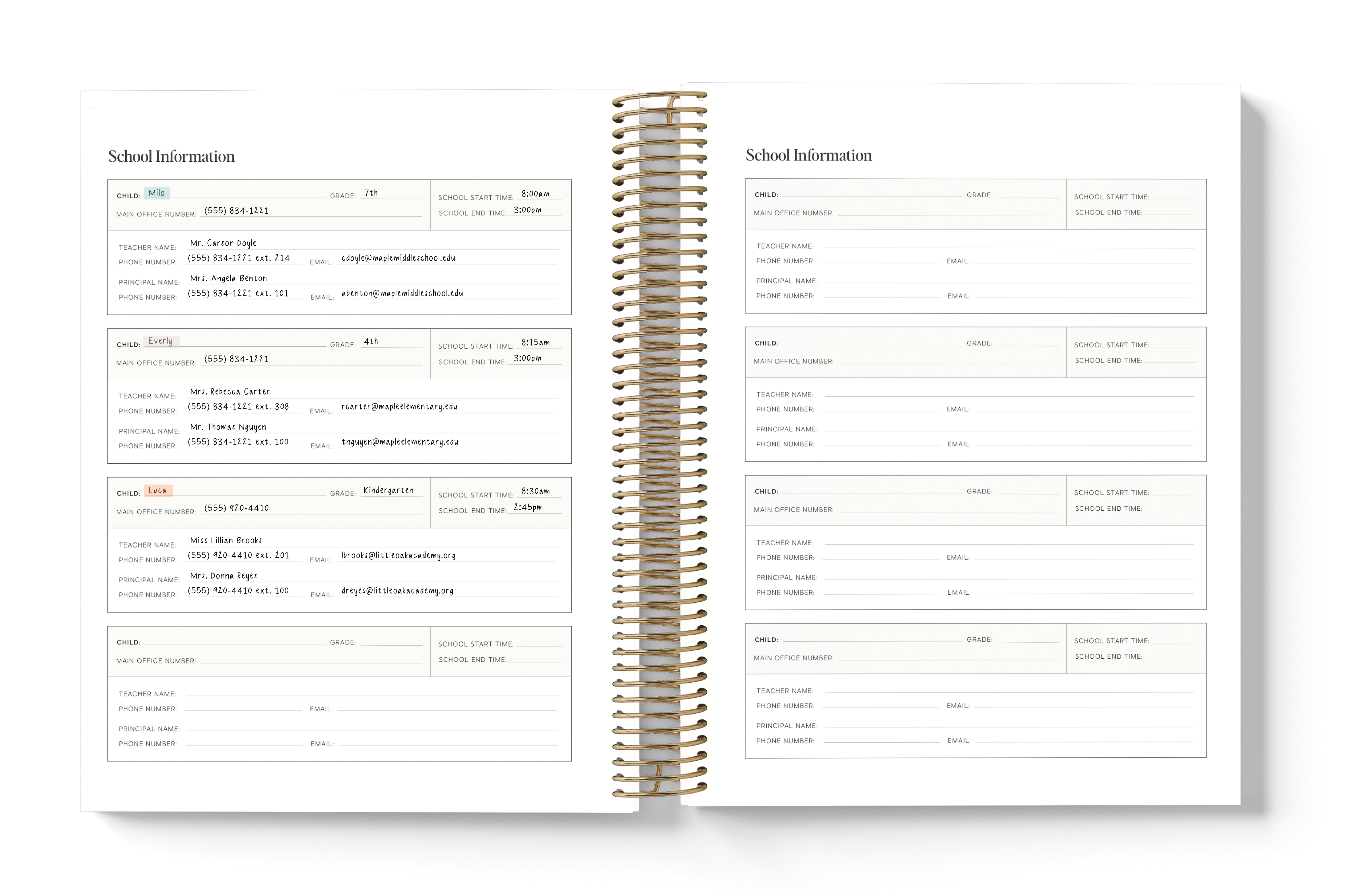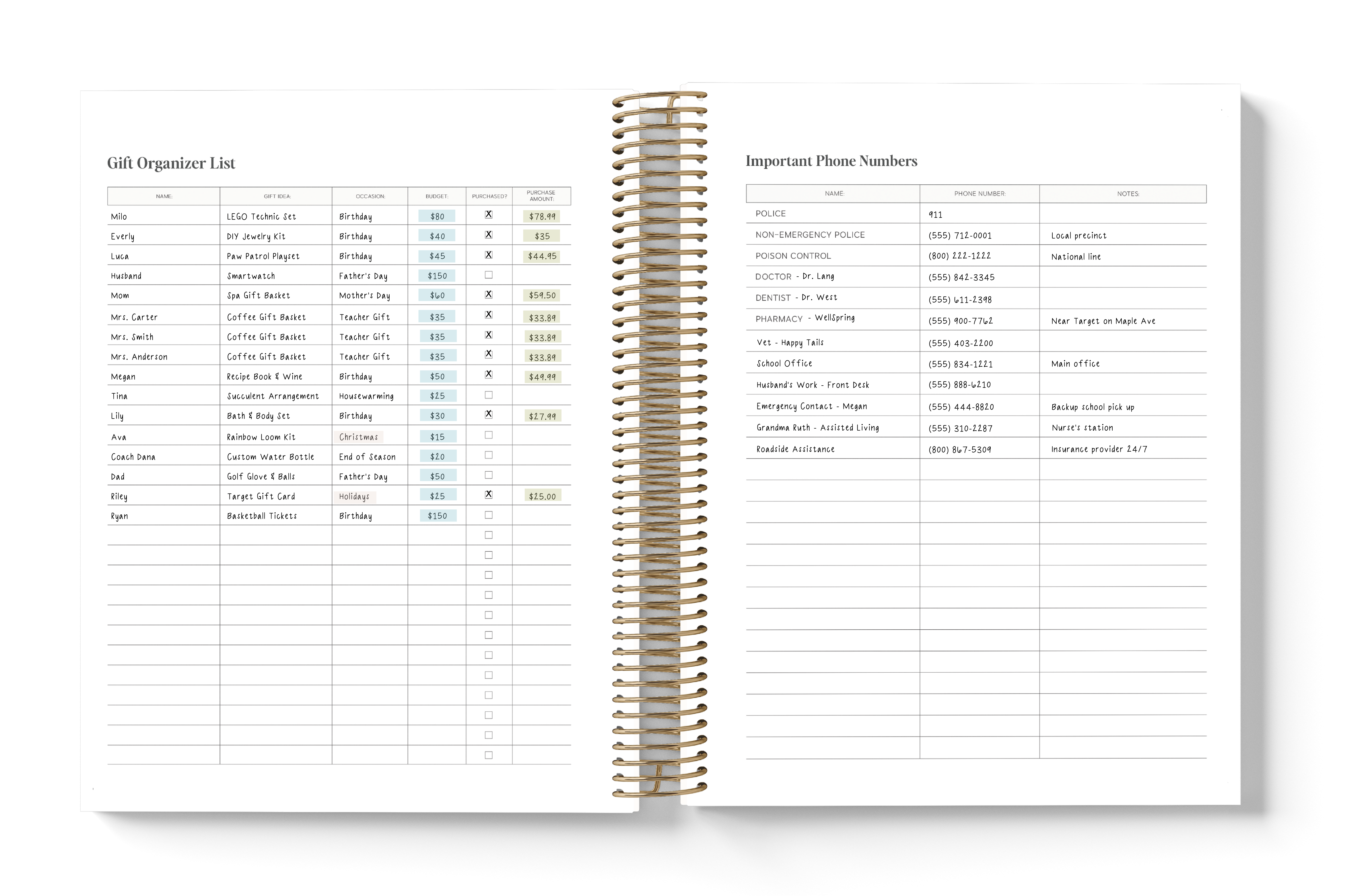 Made for busy parents, this planner includes everything from school contacts to packing lists and meal planning. With daily time-blocking pages, it’s perfect for managing every appointment, to-do, and task – both personal and family-related.