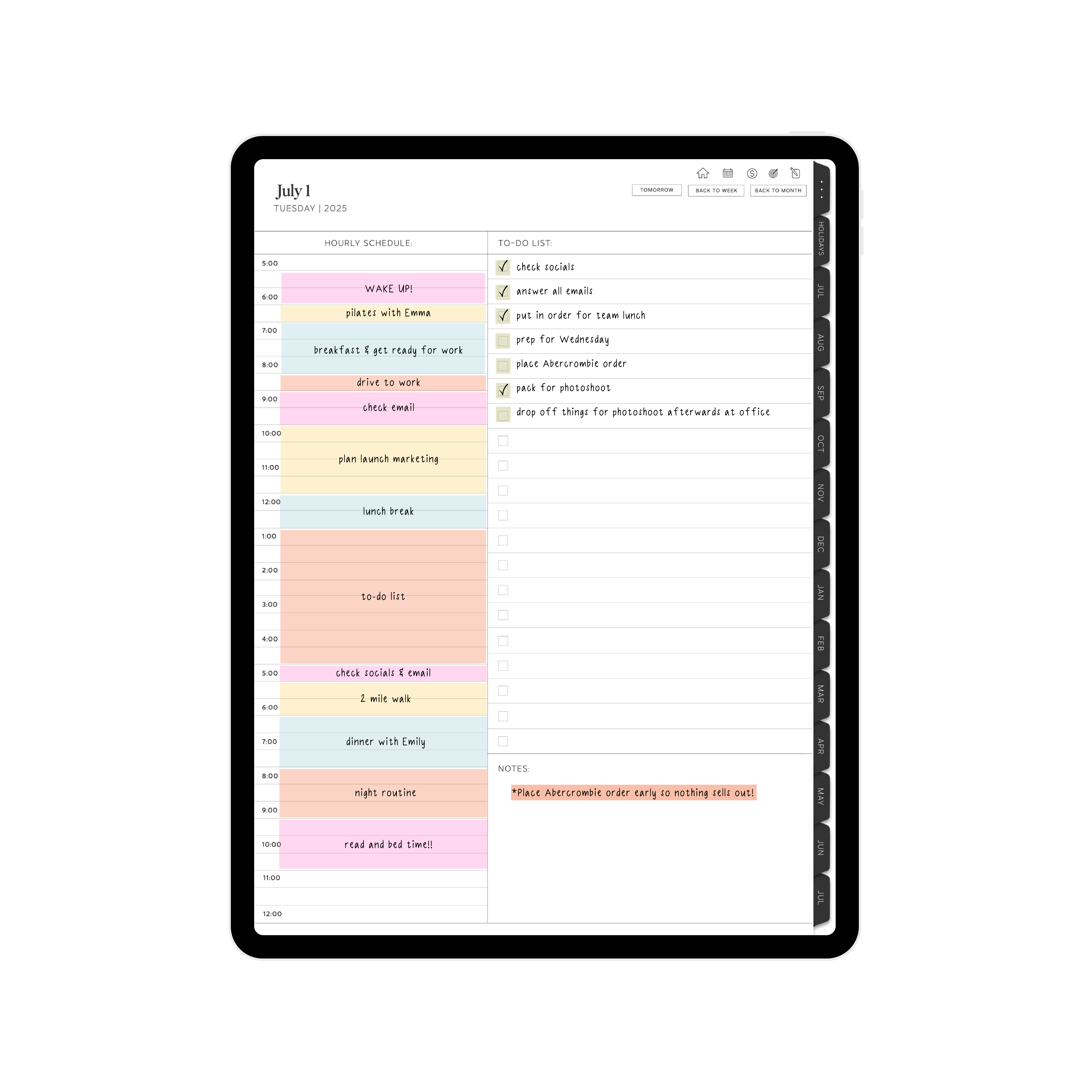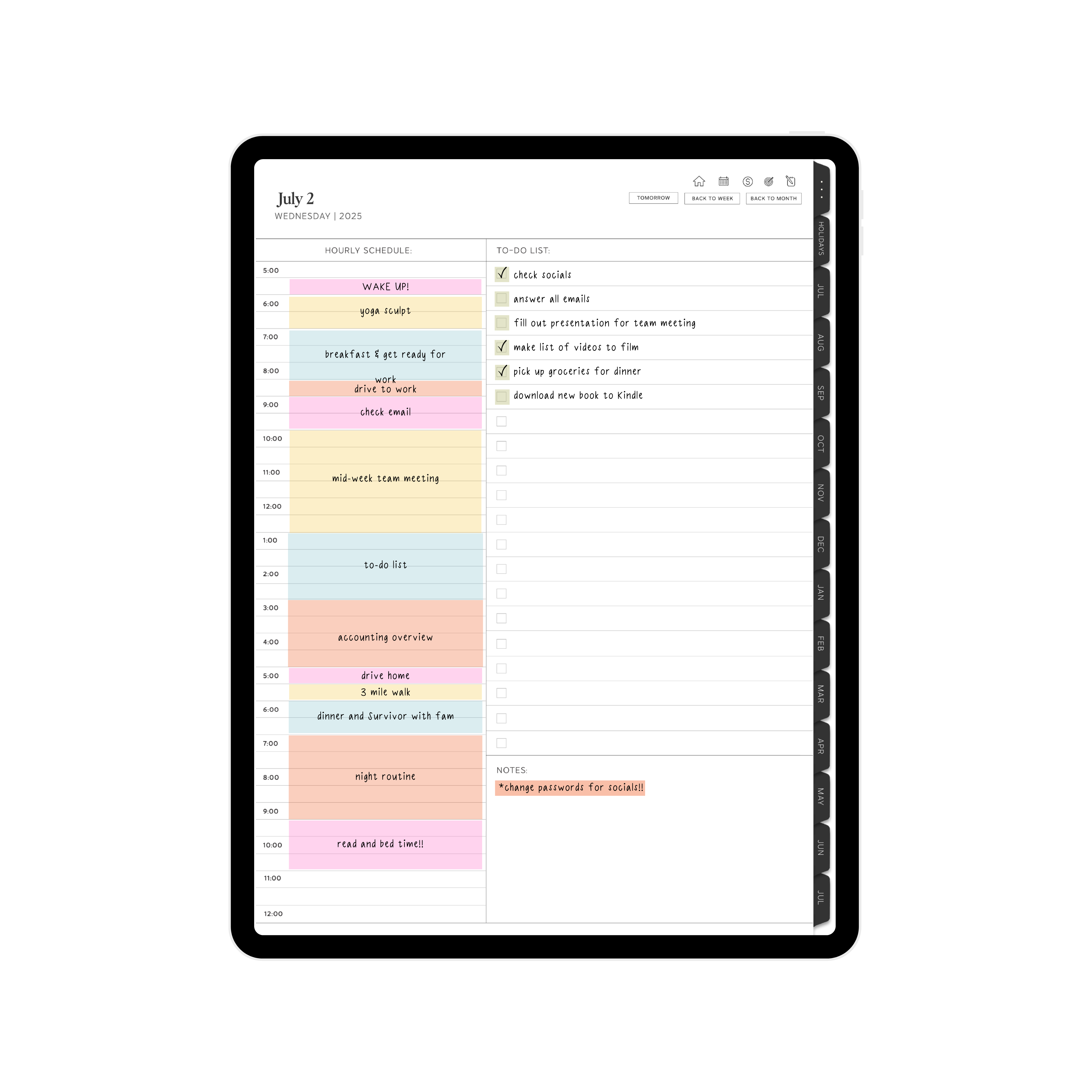 Ideal for those who prefer detailed, day-to-day planning (even on weekends!). It offers ample space for daily time-blocking, task lists, and notes, making it perfect for anyone with a busy schedule who needs to manage their time meticulously.​