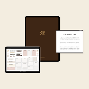It includes our best selling dated iPad planner, a clean handwritten font for a polished look, and a curated pack of digital stickers to personalize your layouts. Designed for GoodNotes, this bundle helps you stay productive, organized, and inspired every single day.