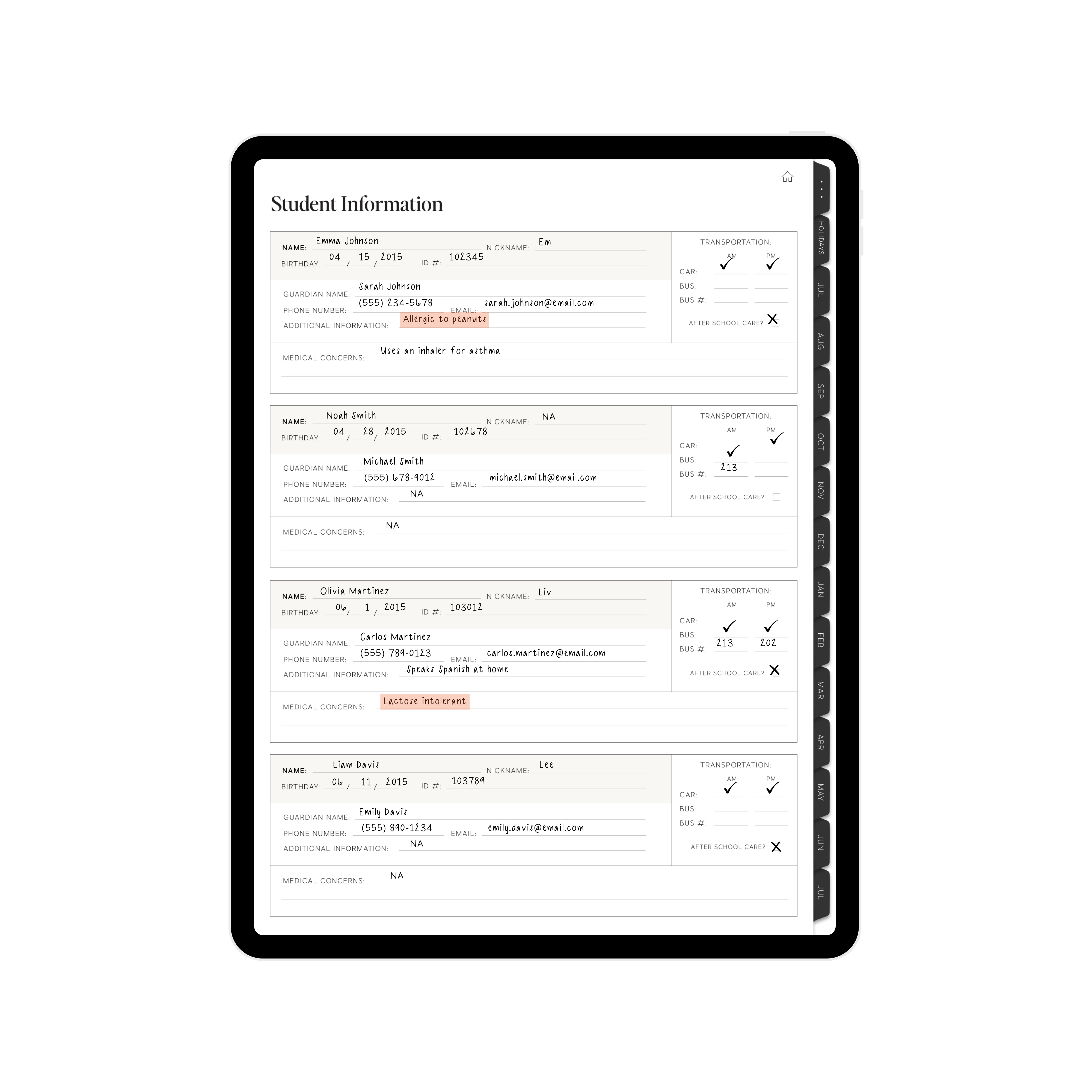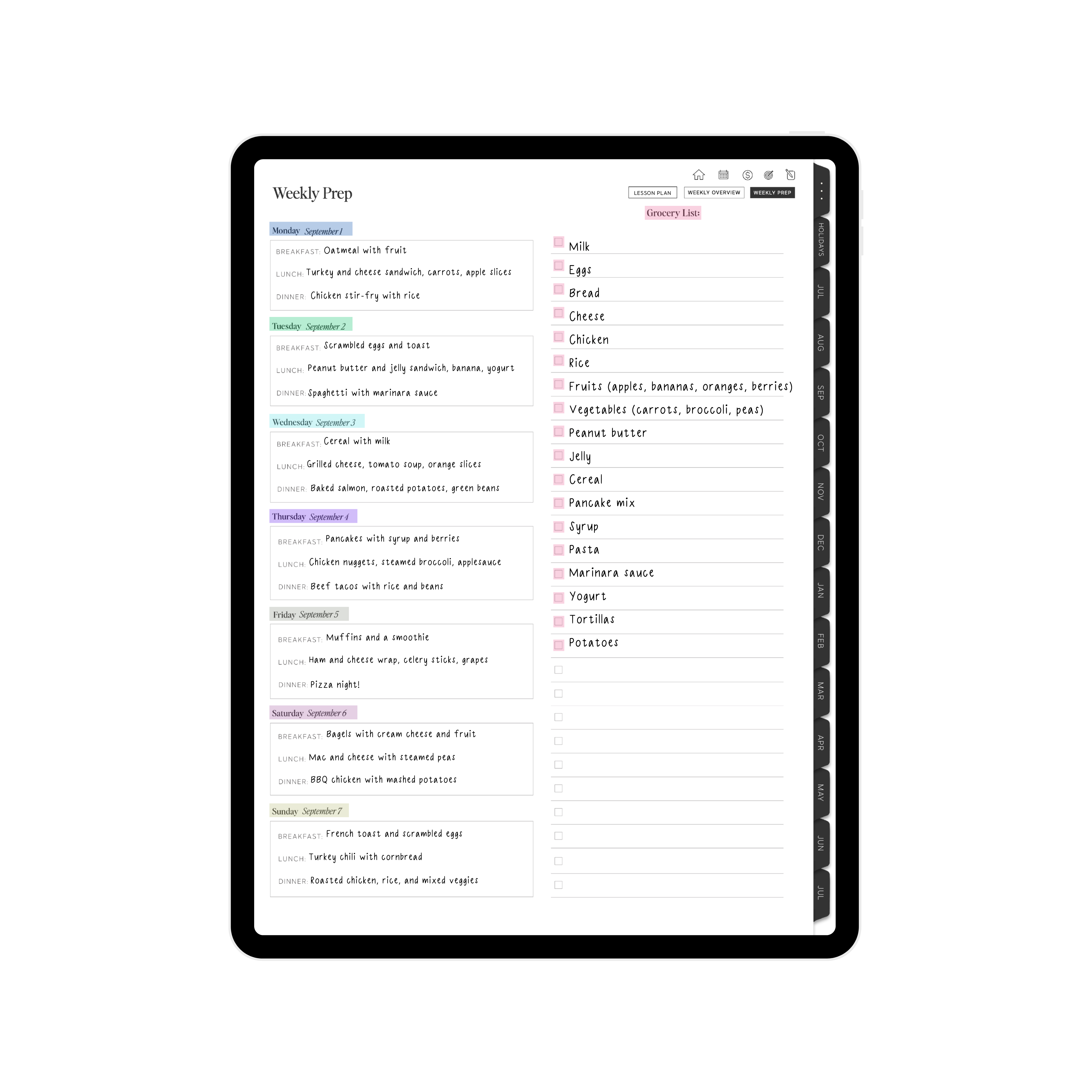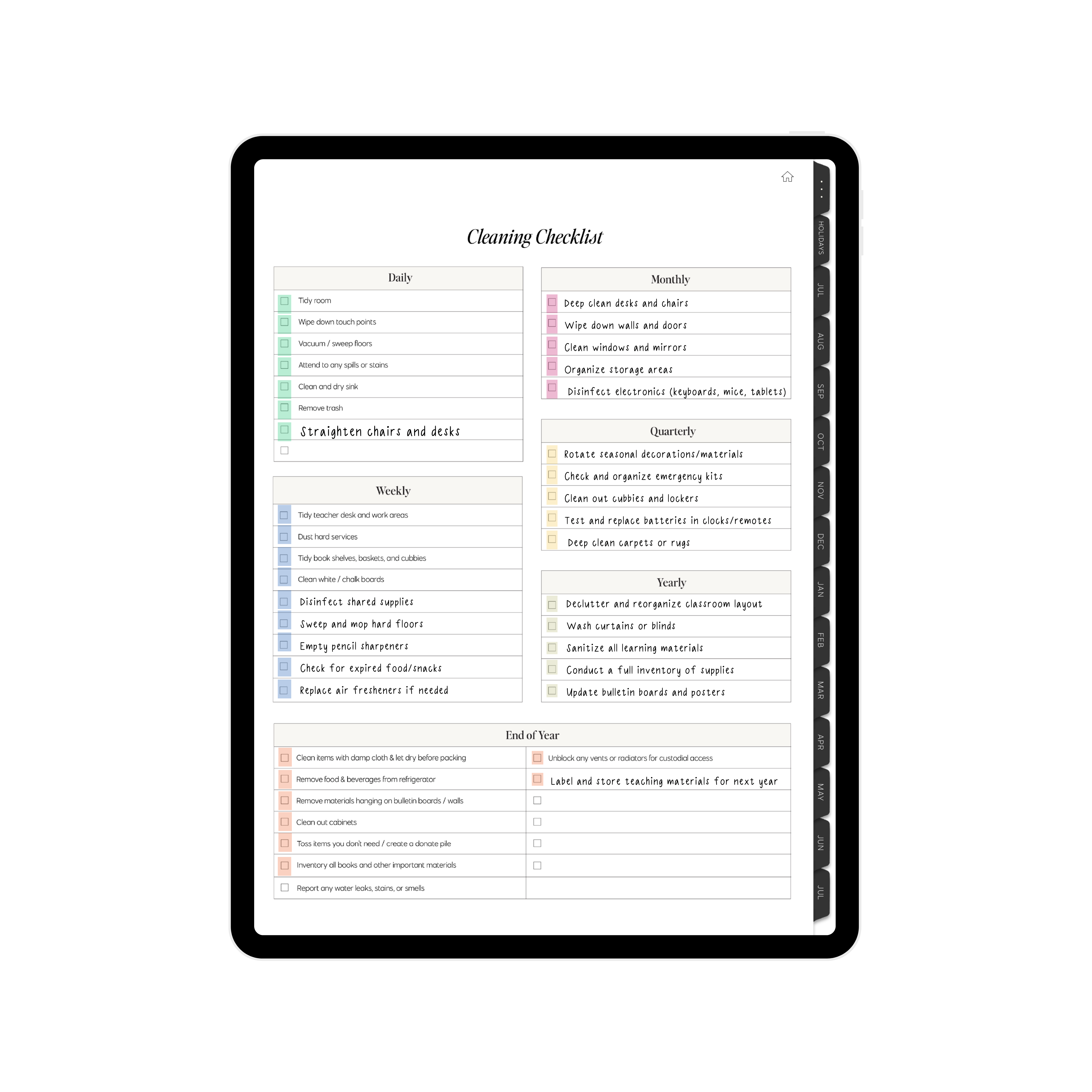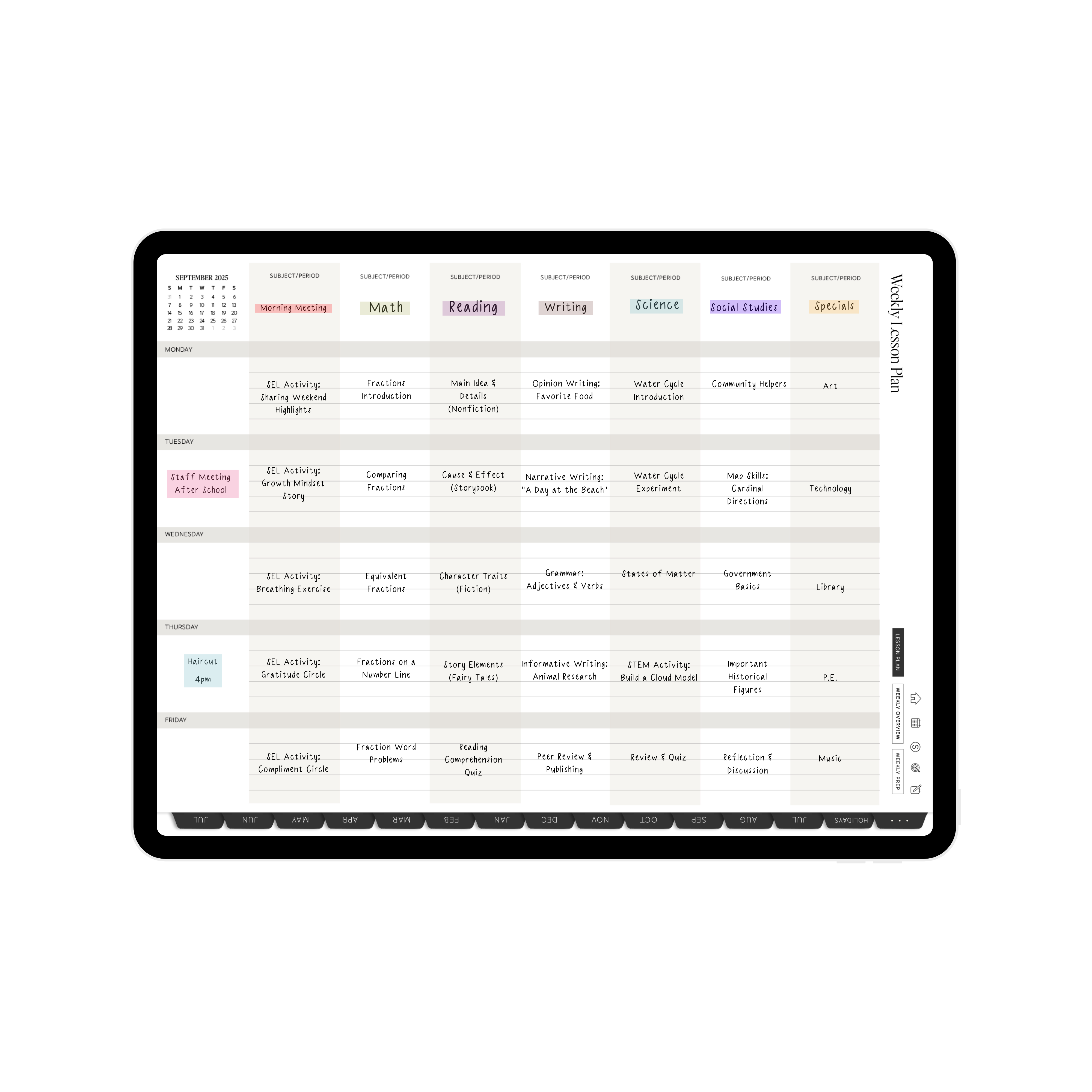 All the teacher-focused pages you need, but featuring a weekly layout rather than individual daily pages. No time-blocking, just a simple weekly view for planning lessons and classroom activities and managing tasks at a glance.