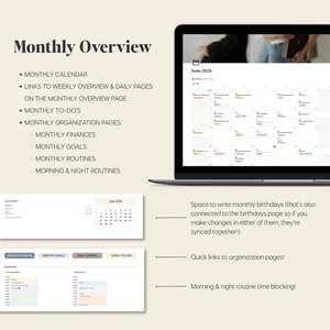 Can I sync my Google or Apple Calendar with this planner? Not directly. The calendar in our Notion template is built from a Notion database, which cannot receive events from external calendars. However, you can view both your external calendars and our template’s database together in the free Notion Calendar app. This lets you see everything side-by-side in one place, but it does not import events into the planner itself.