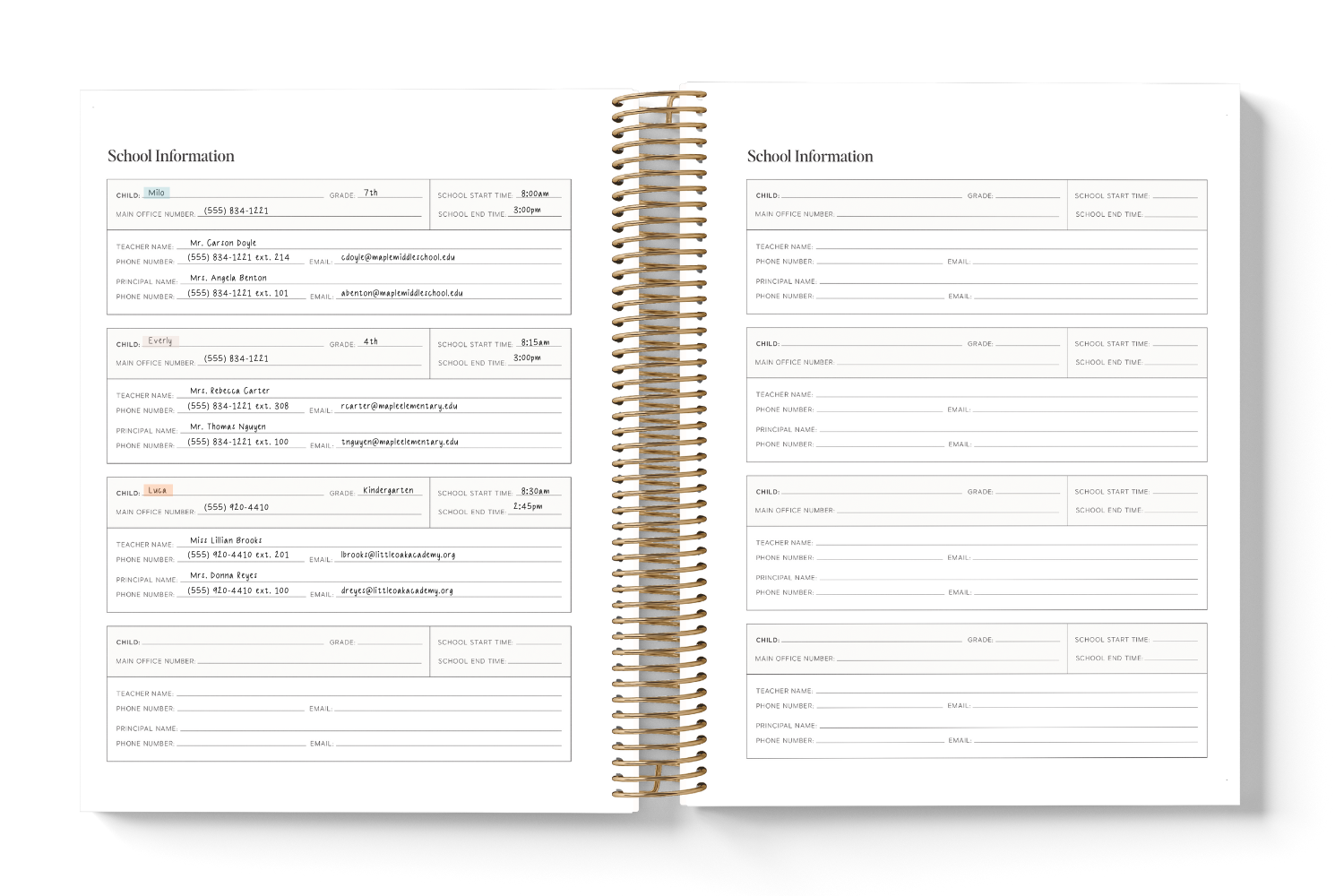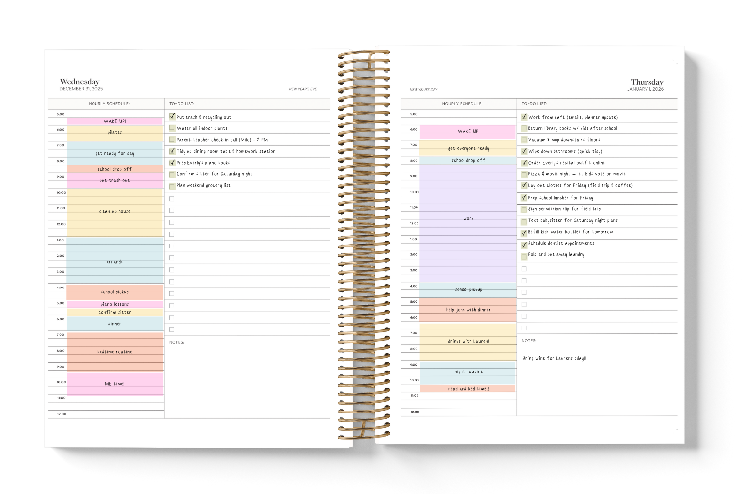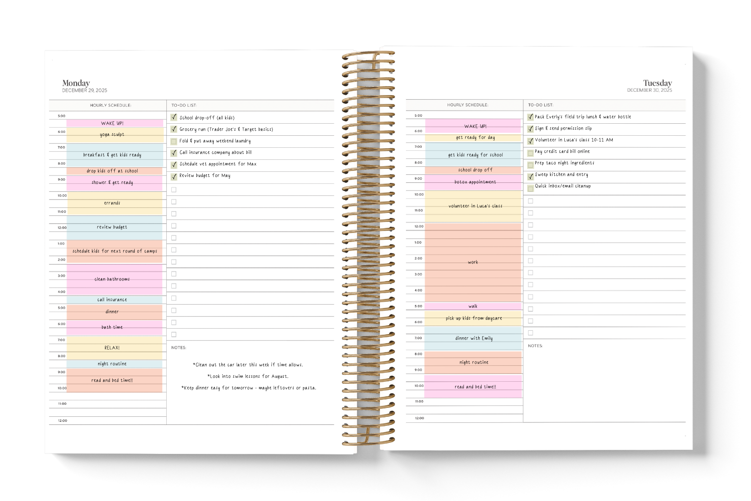 Made for busy parents, this planner includes everything from school contacts to packing lists and meal planning. With daily time-blocking pages, it’s perfect for managing every appointment, to-do, and task – both personal and family-related.