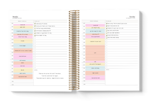 A planner for Type A's that focuses on individual scheduling and task management. While it offers detailed daily planning, it does not include the family-centric features found in the Mom Planner.