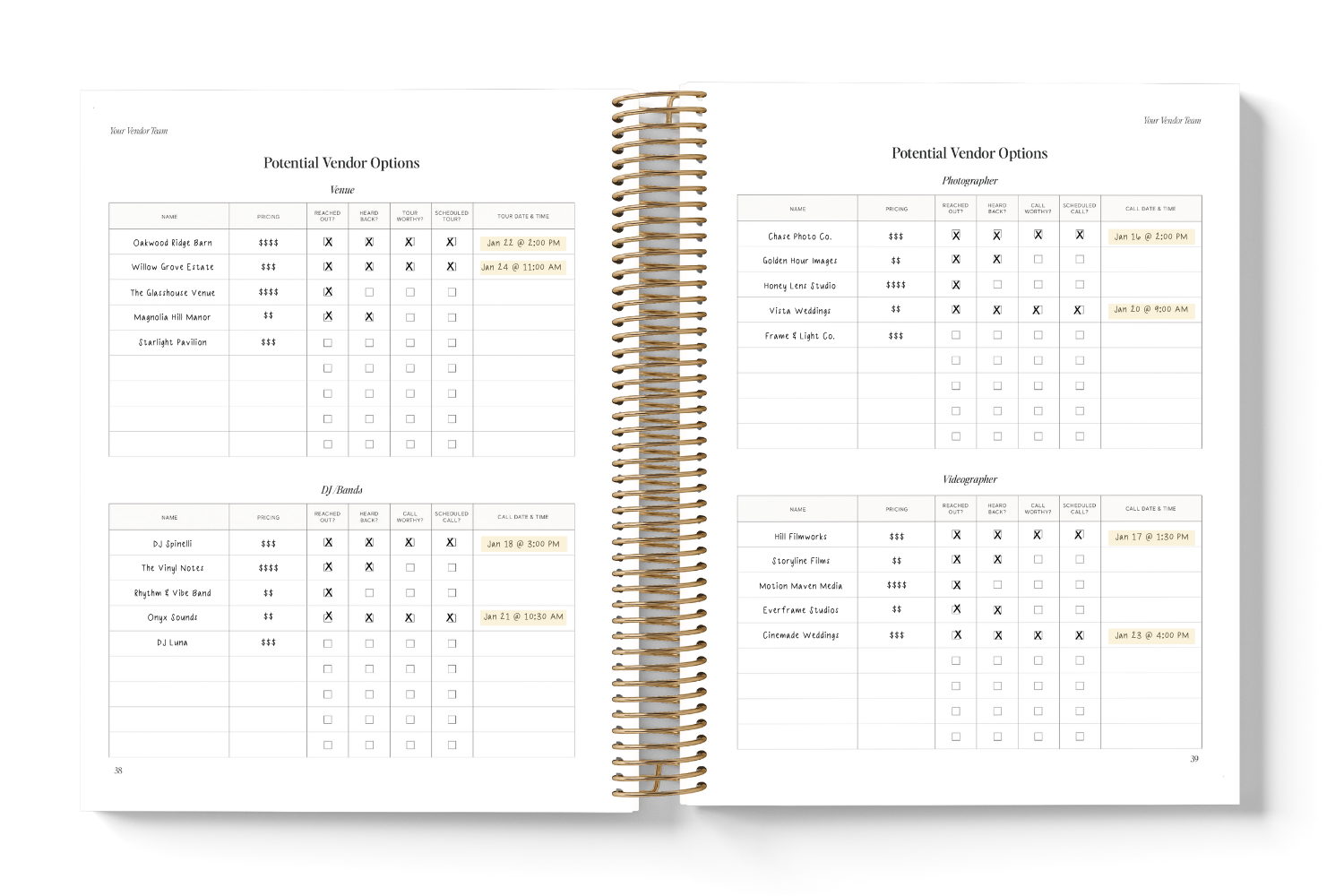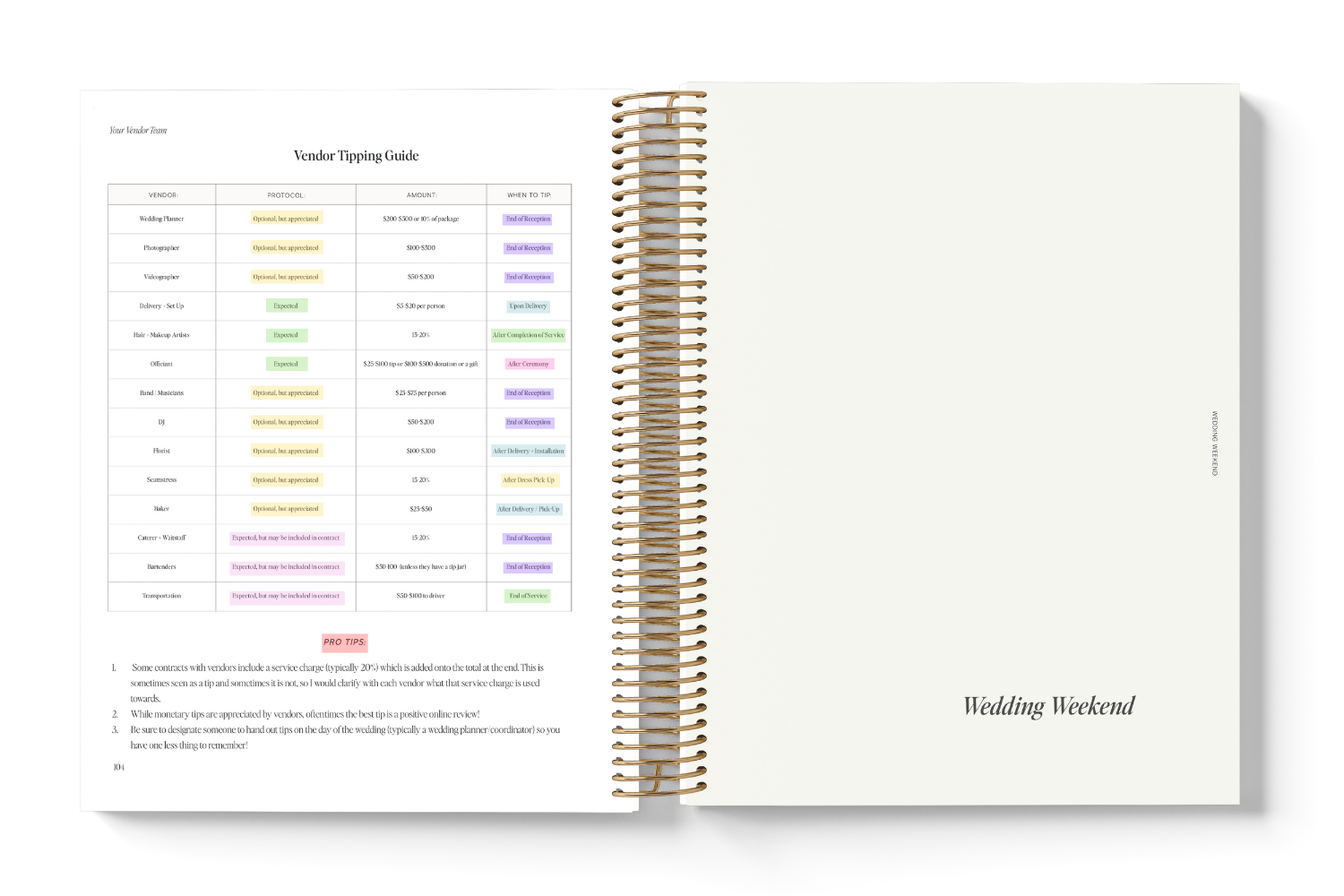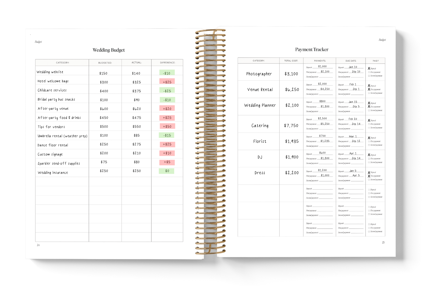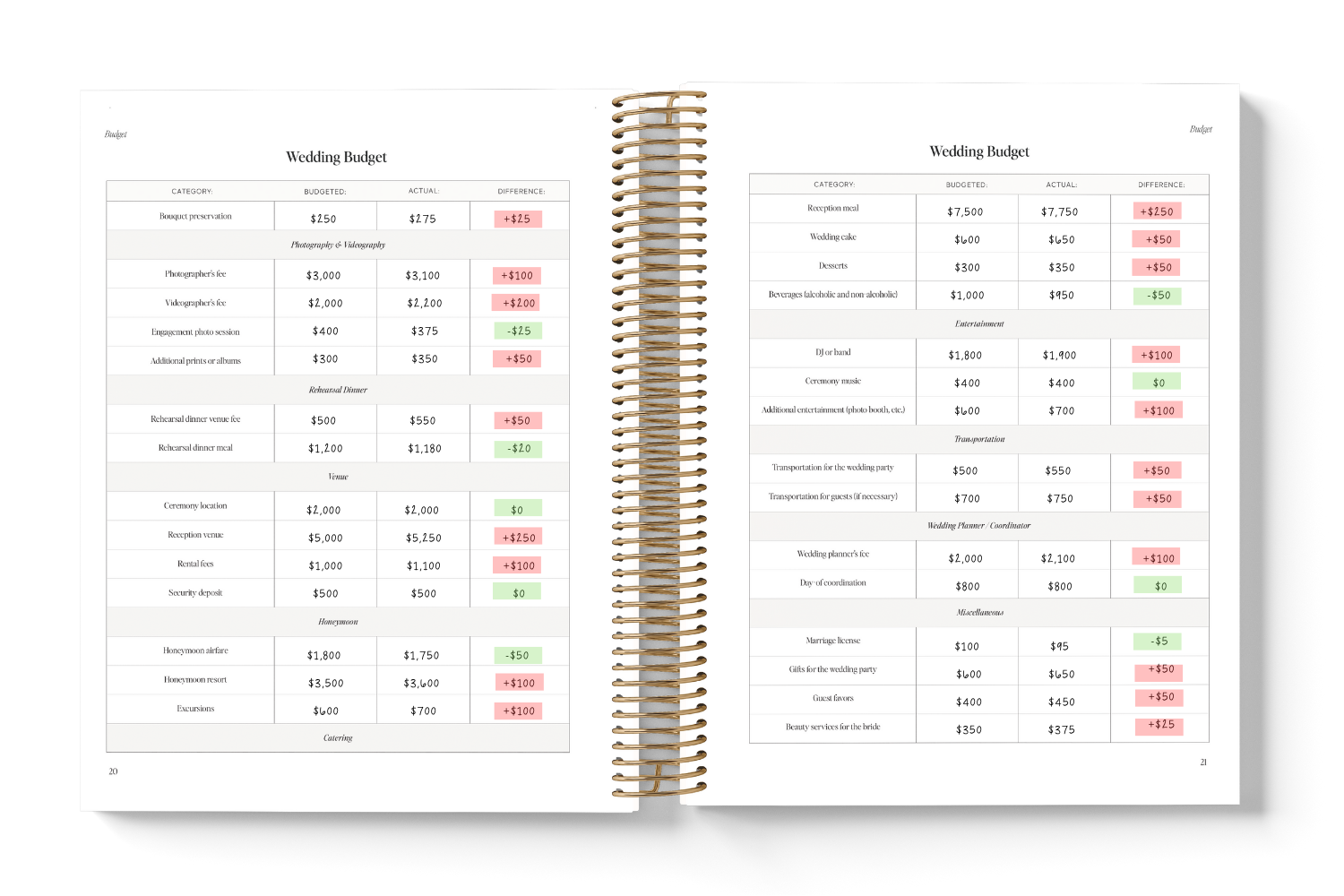 If you’d like to pair your wedding planner with a digital tool to keep you even more organized before putting pen to paper in your keepsake wedding planner, check out our Wedding Planning Spreadsheet.